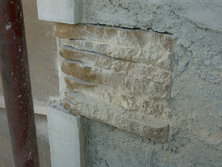 La toiture est constituée d’un voligeage jointif en relativement bon état jusqu’à la sablière. L’élément vertical sur lequel est fixé le voligeage, est un chevron-arbalétrier enfourché sur une pierre triangulaire. Cette pierre, présente sur les quatre pans de toiture, est enrobée de cuivre du côté extérieur.