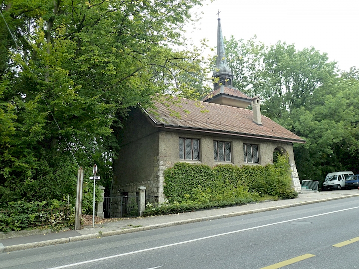 Sources et extraits de : ''Arts et monuments - Ville et canton de Genève'' - Edition Benteli Berne 1985 et ''Les Chapelles en style suisse de Genève'' - Rapport de Mme. S. Lob-Philippe de 1999