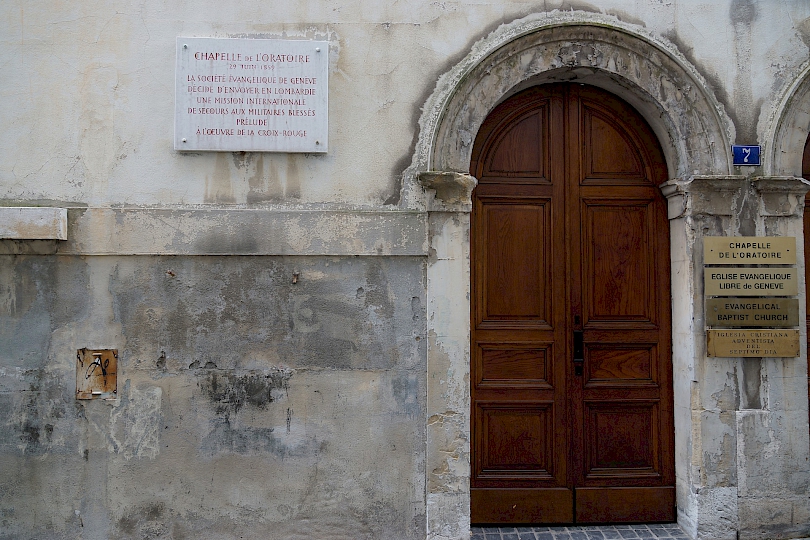 Parmi les citoyens éminents attachés à l’Oratoire, notons Henry Dunant, fondateur de la « Croix-Rouge », qui faisait partie de ces vocations du « Réveil ». Une plaque commémorative nous rappelle que la chapelle a été le point de départ de la première mission internationale de secours aux militaires blessés, le 29 juin 1859, trois ans avant la parution de « un souvenir de Solférino » de Henry Dunant, cinq ans avant la première Convention de Genève.