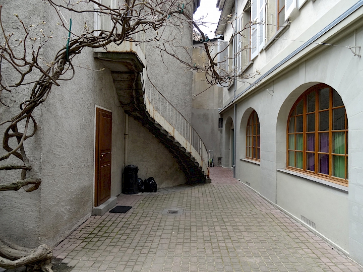 En 1994, l’Église Évangélique Libre de Genève entreprend des travaux de réfection de la cour de la chapelle. Le sol de gravier est remplacé par un sol dur constitué d’un pavage de pierres et dalles.