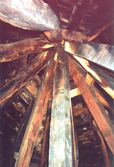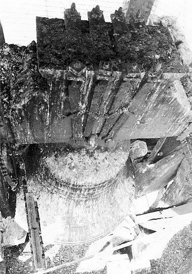 Vue plongeante sur le joug et la grosse cloche avant et après les travaux.