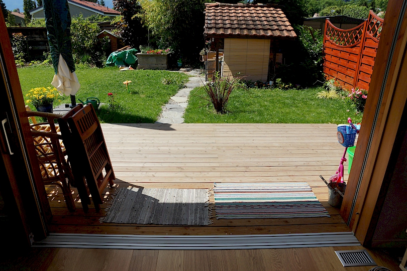 Le projet développé sur la parcelle 2223 s’insère dans un espace auparavant occupé par un petit garage à voiture et partiellement sur la bande de terre interstitielle entre deux villas. Un cheminement de 120 cm de large a été aménagé le long de la limite parcellaire de façon à maintenir la liaison par l’extérieure entre les jardins situés à l’avant et à l’arrière de la maison. En extrapolant ce projet pour l’ensemble des parcelles le long de ce chemin, nous obtiendrions un taux d’occupation moyen de 31.09% pour les 28 parcelles. Par ailleurs, ce logement contigu pourrait, s’il était répété sur chaque parcelle, offrir 2'240 m2 de surfaces habitables supplémentaires avec 28 logements de 80 m2. Additionnées au 3'116 m2 de surfaces habitables actuelles, cela représenterait une augmentation globale de 42% de la surface habitable.