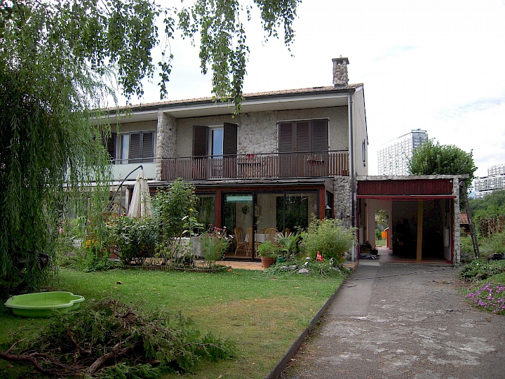 Ce projet s’inscrit dans un contexte de vieillissement de la population du quartier du Coin de Terre de Aïre et de son nécessaire repeuplement. Dans le cas particulier, le programme concerne le logement d’un couple ayant pris sa retraite récemment. Estimant que leur maison de 6 pièces ne correspondait plus à leurs besoins, en termes de surface et de typologie, ils ont proposé à leur fille et beau-fils de s’installer avec leurs 2 enfants en bas âge dans leur logement, en précisant qu’ils souhaitaient habiter à proximité. Le projet a donc consisté à construire une maison pavillonnaire sur un niveau de plain-pied, sur une surface de 80m2 brut en contiguïté de la maison existante (rectangle rouge sur la parcelle 2223). La typologie projetée est adaptée pour des personnes à mobilité réduite.