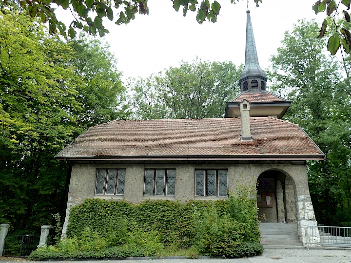 Sources et extraits de : ''Arts et monuments - Ville et canton de Genève'' - Edition Benteli Berne 1985 et ''Les Chapelles en style suisse de Genève'' - Rapport de Mme. S. Lob-Philippe de 1999