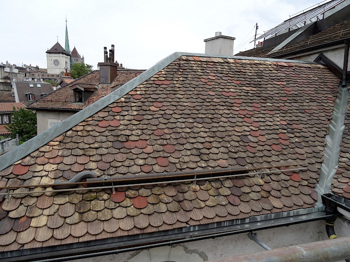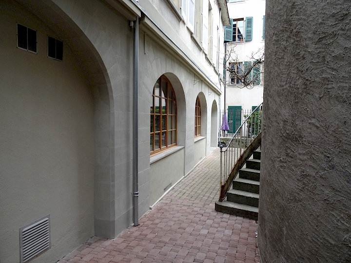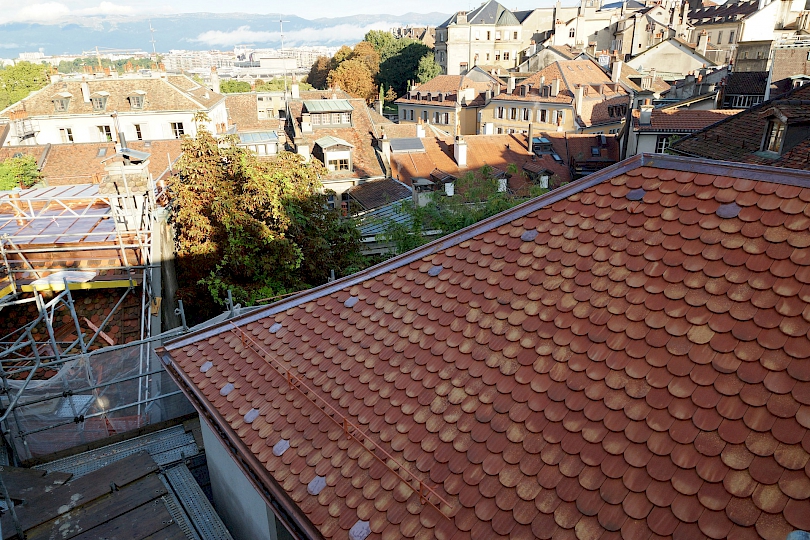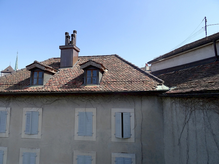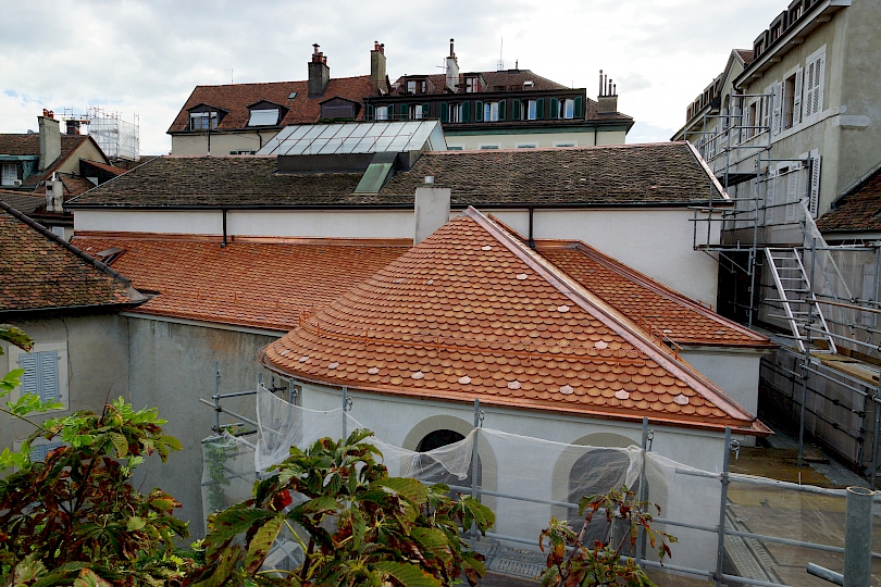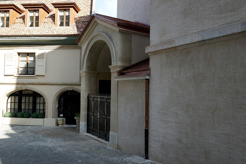- 1934-1930 : Restauration considérable par l’architecte Edmond Fatio (1871-1959), travaux d’hygiène et d’aération, reprise complète du plafond de la grande voûte et restauration des immeubles sur cour.