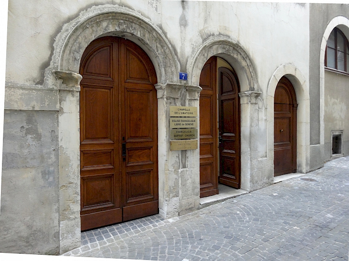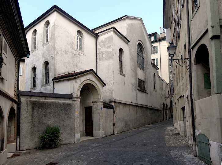 Edifiée en 1833-1834 par l’architecte français, Jacques Louis Brocher pour la Société Évangélique, aujourd’hui Église Évangélique Libre de Genève. Situé dans la zone protégée de la vieille-ville de Genève, l’édifice est construit sur un plan basilical, tronqué sur la façade ouest, laquelle suit l’irrégularité de la parcelle.