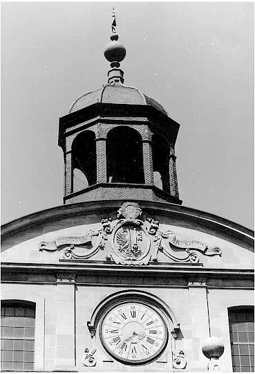 Les ferrements de suspension de la grosse cloche ont été traités et peints avec une peinture anti-corrosion et une finition de teinte anthracite semi-mate. Sur le joug, on devine l'inscription de 1763.